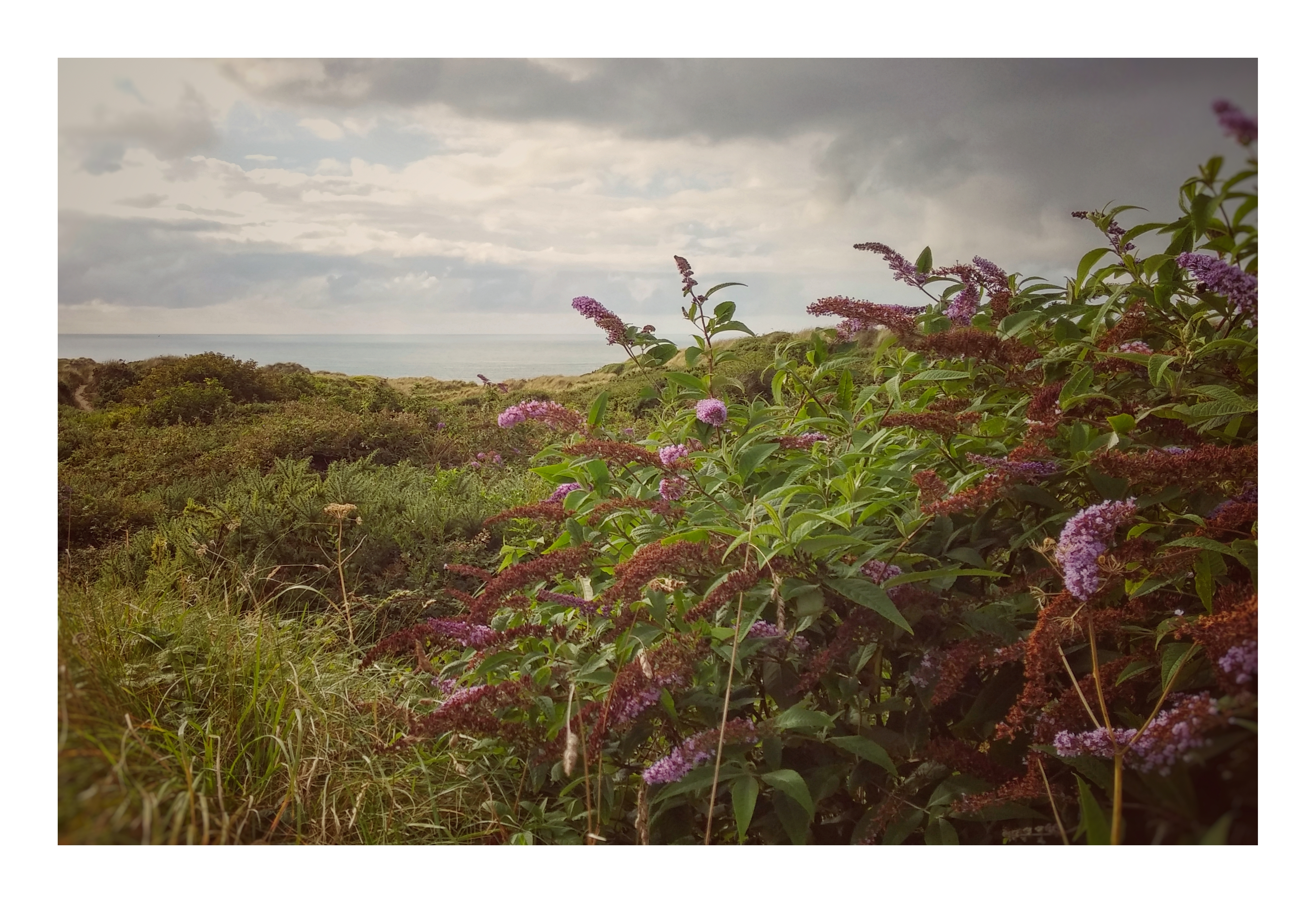 I exchange slip-on trainers for walking boots, pick up my small rucksack with my camera inside and head off across the dunes – or “towans”, as I learn they’re called in these parts. The sea breeze is gentle and comforting, and quickly I spot a sliver of silver and there it is: the sea! I make my way down a narrow, well-trod path, increasingly excited by the treat of being here in this beautiful place. I brush grasses and wildflowers as I go, then I crest a small rise and the expanse of the bay reveals itself, and in the far distance – a lighthouse! Sitting on a small rocky island to the east and putting out a siren’s call for me to go and take a closer look.